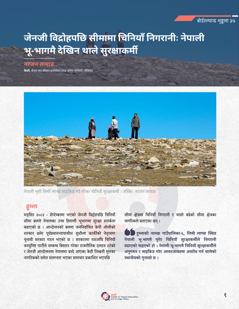 जेनजी विद्रोहपछि सीमामा चिनियाँ निगरानीः नेपाली भू‐भागमै देखिन थाले सुरक्षाकर्मी