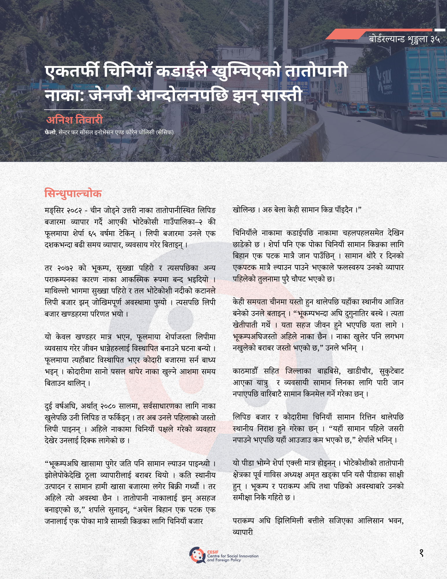 एकतर्फी चिनियाँ कडाईले खुम्चिएको तातोपानी नाका: जेनजी आन्दोलनपछि झन् सास्ती