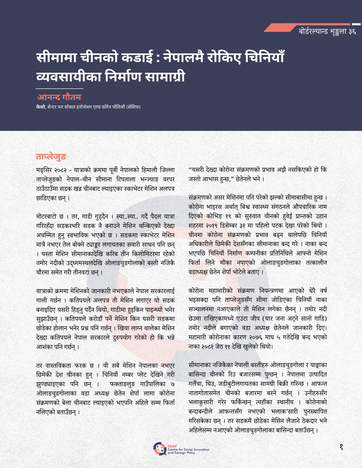 सीमा क्षेत्रमा जग्गा किन्ने, मतदाता नामावली दर्ता गर्ने र बसाइँसराई बढ्दै गएपछि चीनले निगरानी झन् कडा पारेको स्थानीयको अनुभव छ। यसैबीच कामदारहरूलाई “चिसो” को नाममा फर्काइने, फोटोसहित रोक लगाइने, र दैनिक १५–२० जनासम्म डिपोर्ट गरिने घटना बढेका छन्।